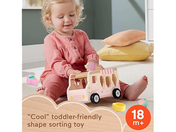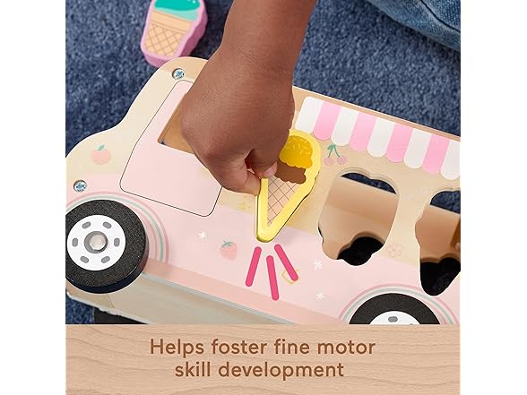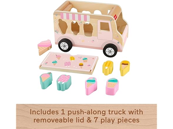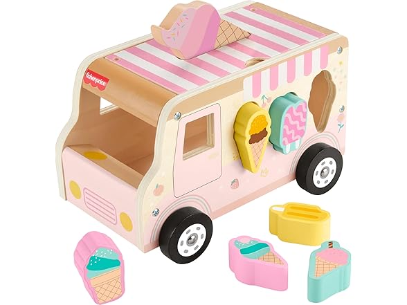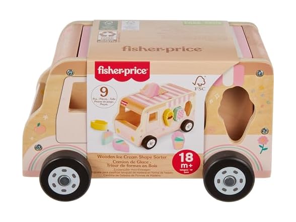 Fisher-Price Wood Toddler Toy Ice Cream Truck Shape Sorter Set, 9 Wooden Pieces for Developmental Play Kids Ages 18+ Months