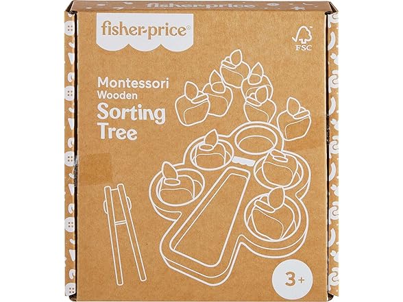 isher-Price Wood Montessori Toy Sorting Tree, American Montessori Society Seal of Excellence, Wooden Learning Activity Puzzle & Expert Play Tips for Preschool Kids Ages 3+ Years