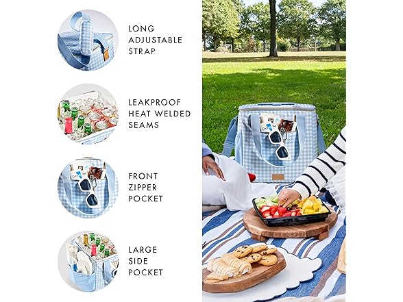 - INSULATED & LEAK-RESISTANT - Our cooler bag ensures your drinks stay cool even in the hottest temperatures. Perfect for wine, seltzers, beer, lunches, and more! It's leak-resistant interior, this large soft cooler reduces spills and messes on the go.