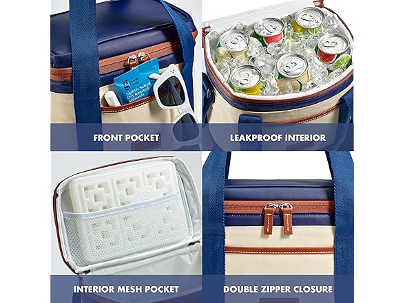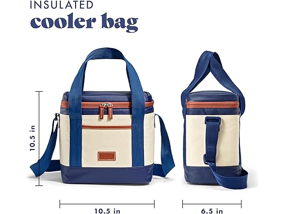 - FUNCTIONAL DESIGN - This insulated cooler bag features a smooth glide zipper for easy access and faux leather accents. With an interior mesh pocket to hold large ice packs and an exterior slip pocket to hold small items, you're ready for anything!