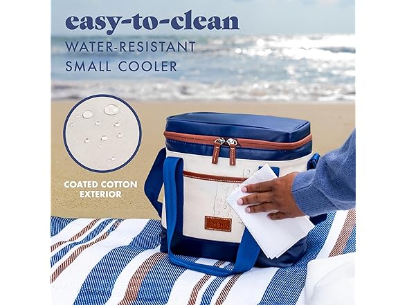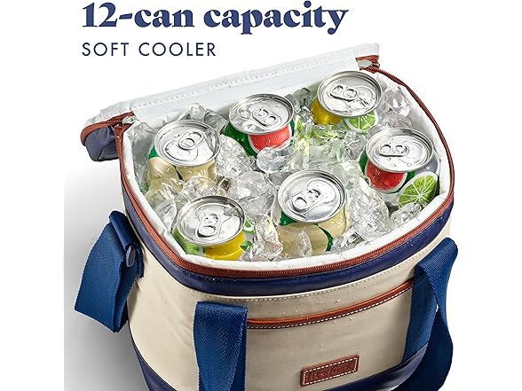 - 12 CAN COOLER - Spacious soft cooler bag fits 12 cans and plenty of ice. With thick insulation and a leakproof interior, your food and drinks stay cool all day. A car cooler that’s stylish enough for work, practical enough for road trips & boat days.