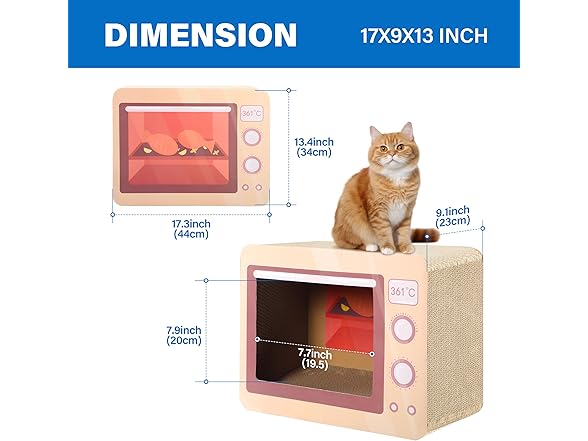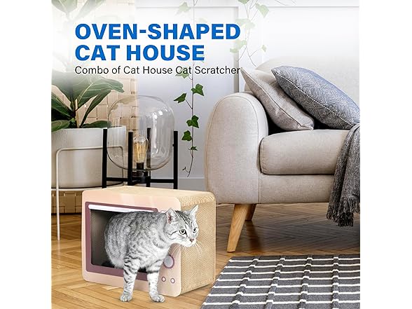 FluffyDream Oven Cat Scratcher Board - Durable Lounge Bed for Cats - Indoor Scratch Pad & Play House - Corrugated Toy for Cat Birthday - 17.3L*13.4W*9.1H