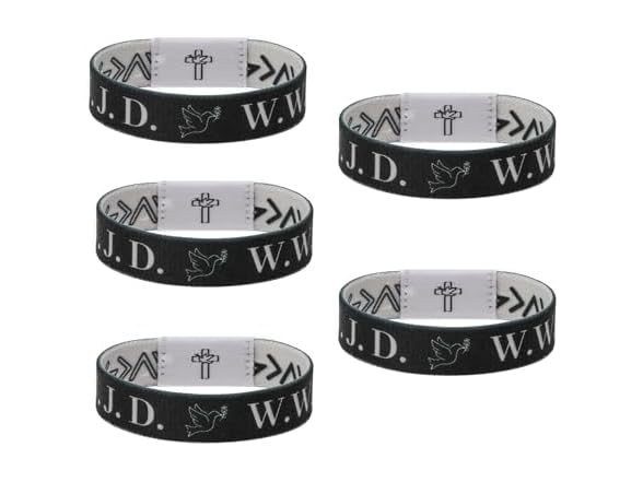 Flvkev WWJD Bracelets Set Daily Bible Verse Bracelet Scan for Men Women, What Would Jesus Do Bracelets Christian Scripture Bracelets Religious Wristbands for Fundraisers (wwjd-black-5pcs)