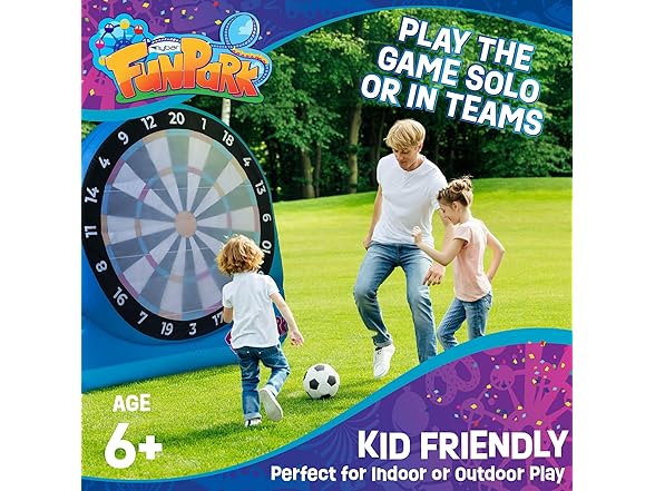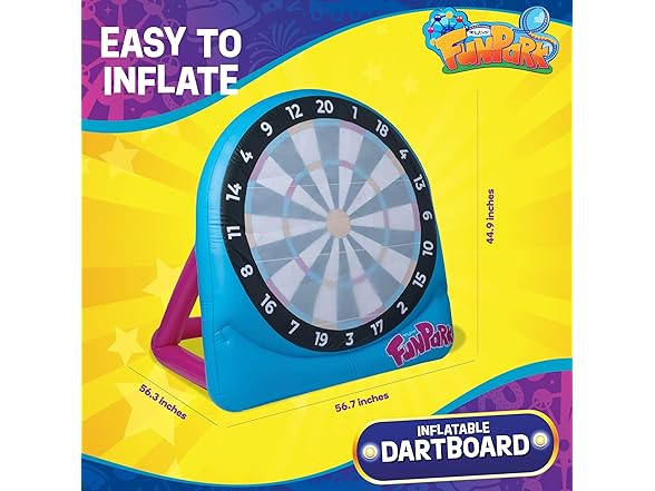 - Giant Inflatable Dartboard - Over 4.5 feet tall, this jumbo inflatable dartboard is the ultimate backyard game for kids, perfect for summer parties, birthdays, or everyday play..