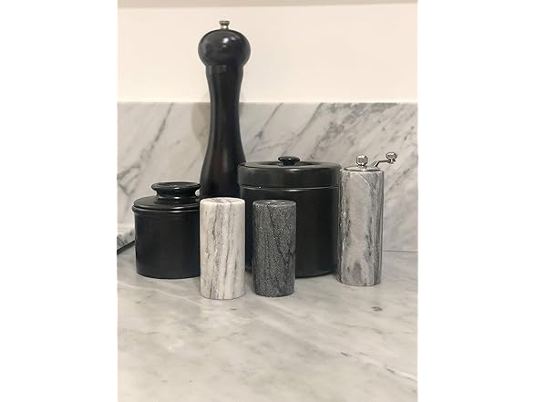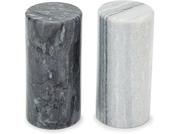 Fox Run White and Black Marble Salt and Pepper Shaker Set, Set of 2 (White/Black)