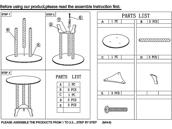 Frenchi Furniture Table, White, 18.91 in x 18.91 in x 22.97 in