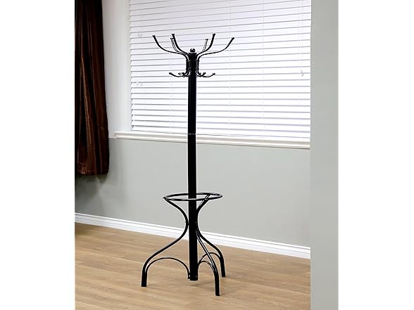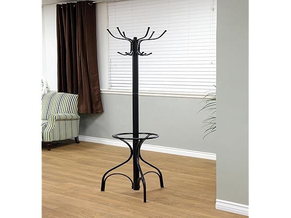 Add a contemporary touch to your home with the Ripley Island Coat Rack. This elegant coat rack features 2 levels of hooks placed at the top that double up its storage capacity. It even features a spacious umbrella holder at the base, allowing you to keep your accessories together in an organized manner.