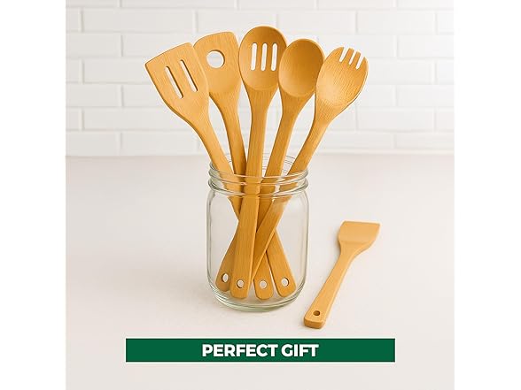 - Perfect Gift for Cooking Lovers - Our 6-piece utensil sets blends charm and function - perfect for gifting or upgrading your space. A must-have among kitchen essentials, it pairs beautifully with bamboo tools and classic wooden spoons for any cook.