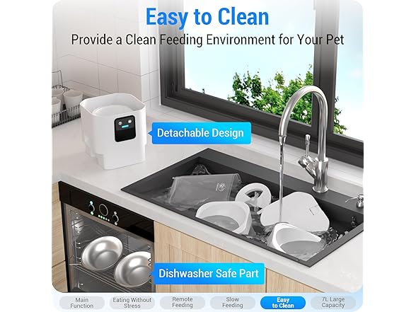 - Detachable Design: The auto cat feeder(BPA-Free) has a removable food tank and stainless steel bowl. Individually disassembled food tank can be cleaned more thoroughly. Stainless steel bowls can be placed in the dishwasher for cleaning. These removable designs make eating more hygienic for your pet.