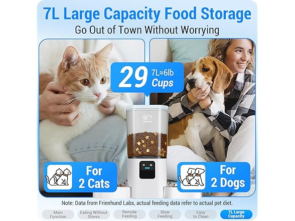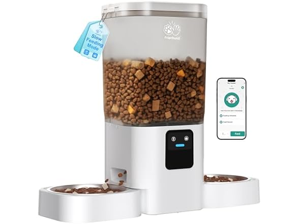 - Support Alexa : Ask your Amazon Echo device to feed your pet a snack hands-free, from anywhere in your home. Nor do you have to worry about your dog's feeding anymore. Leave everything to Frienhud automatic cat food dispenser.