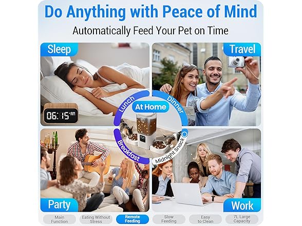 - APP Remote Control: Manage your pet’s meals from anywhere with the “Smart Life” app (iOS/Android). You can set up a feeding schedule of up to 30 meals per day, with 1-12 portions per meal. Reward your furry friend remotely with on-demand feeding, check detailed feeding history, and share access with family members—perfect for busy households or travel.