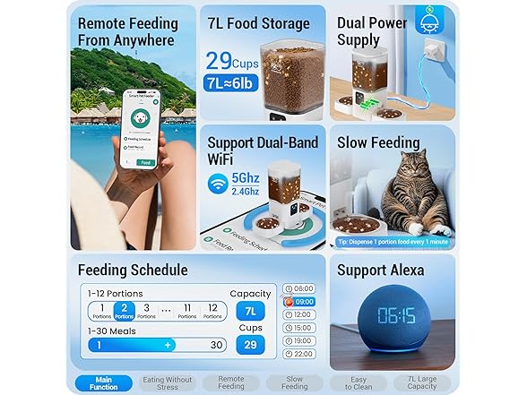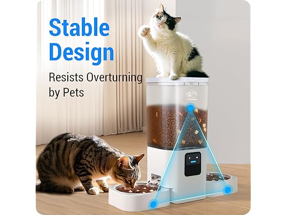 - Dual-Band WiFi: The automatic pet feeder supports dual-band WiFi (2.4GHz & 5GHz). Dual-band WiFi means you don't have to modify your router for channel compatibility issues. The 5GHz band ensures superior stability for seamless app control.