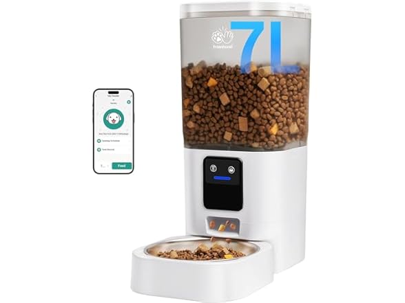 - Support Alexa : Ask your Amazon Echo device to feed your pet a snack hands-free, from anywhere in your home. Nor do you have to worry about your dog's feeding anymore. Leave everything to Frienhud automatic cat food dispenser.