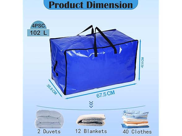 - Say Goodbye to Boxes – Experience a hassle-free move with our sturdy and spacious bags that eliminate the need for bulky and expensive boxes. Our bags are easy to carry, lightweight, and make for an economical moving solution. With a 2-way zipper lid, packing and unpacking has never been easier. Not just for moving, our bags can be used for storage, travel, camping, and organization.