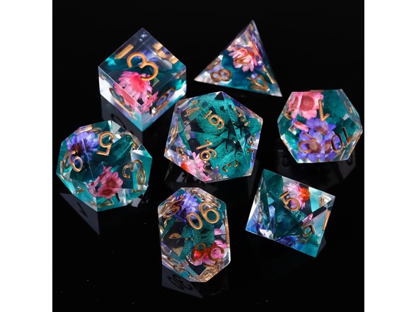 FugaCity DND Dice Set,Liquid Core Handmade Sharp Edge 7 Piece Resin Dice