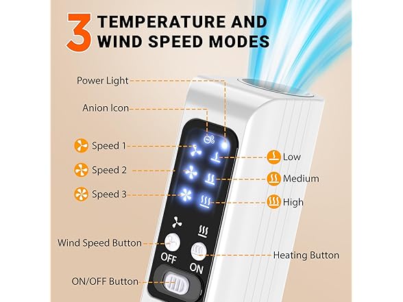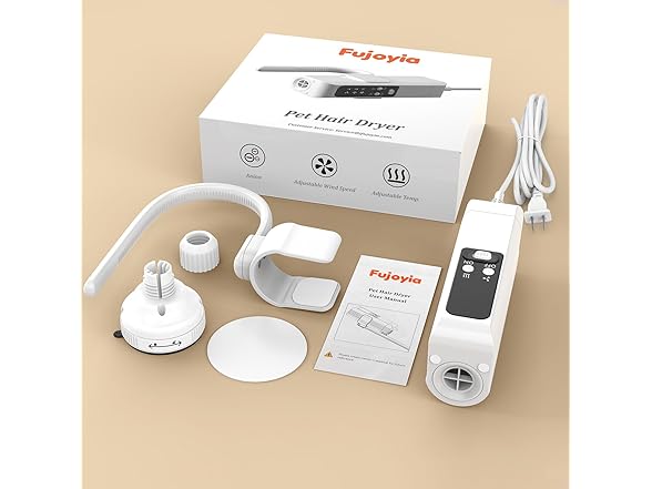 - 3 Customizable Speeds & Heats with Coat-Enhancing Negative Ions Tailor the drying experience to your pet's breed, size, and the season with 3 speed (Low/Med/High) and 3 precise heat settings (68°F Gentle Warm/110°F Medium/154°F High). The built-in negative ion generator releases millions of ions to neutralize static, smooth the hair cuticle, and leave your pet's coat incredibly shiny, soft, and tangle-free.