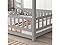LKJYBG Full Size House Floor Bed with Roof Fence Guardrails Easy Assembly Multifunctional Playhouse Bed for Kids Boys Girls Teens (202 x 152 x 187cm) Grey