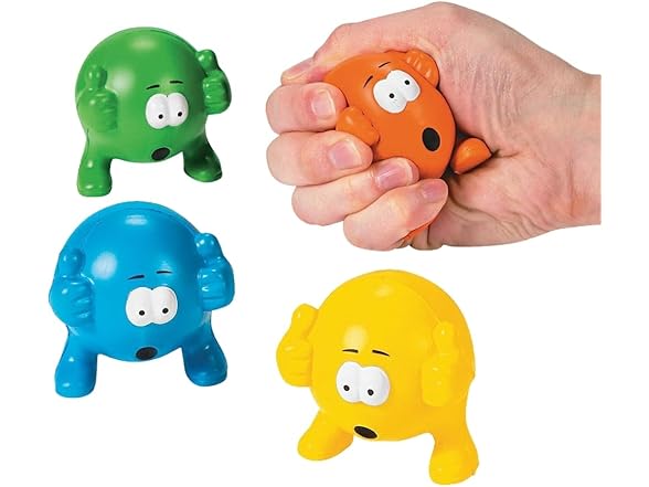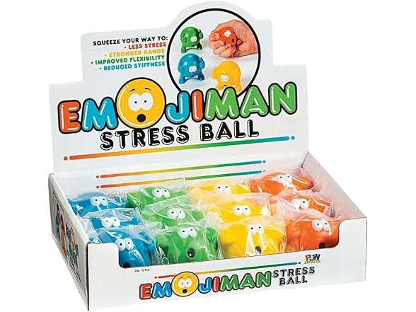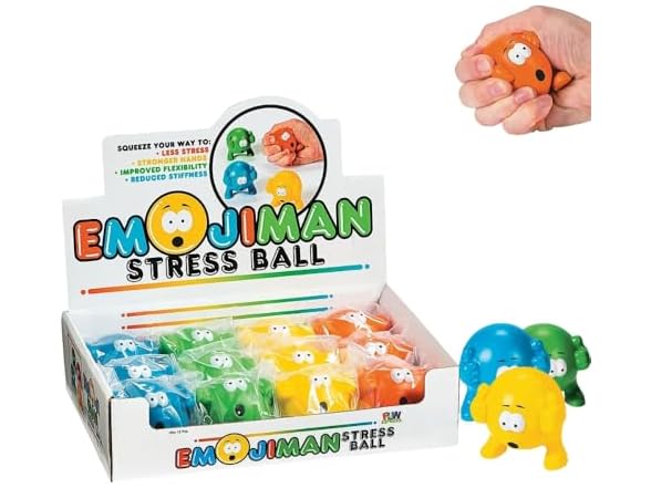 Fun Express Assorted Colors Emoji Man Stress Balls - 2.25" (Pack of 12) - Soft Foam Material- Perfect for Stress Relief, Party Favors, & Giveaways