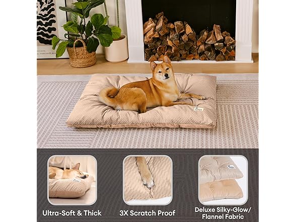 FUNNY FUZZY Dog Bed Crate Pad, Beige