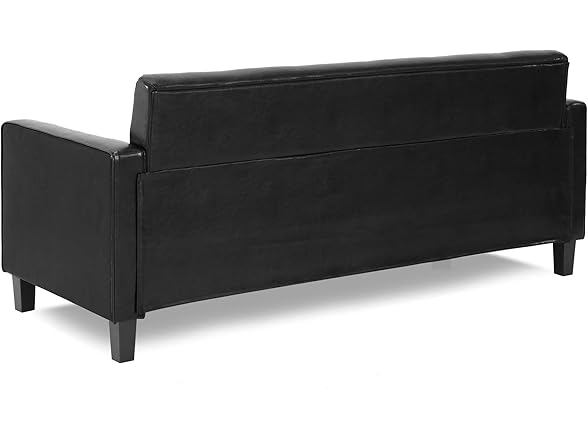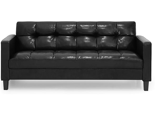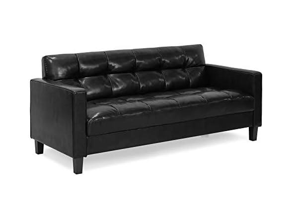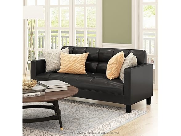 Furinno BRIVE Loveseat Sofa, Tufted Leather Upholstered 3-Seater 75" Wide Couch, Wood Frame, Easy Assembly, for Living Room, Bedroom, Plain Black Leather