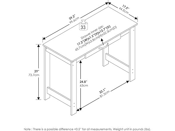 FURINNO Jaya Writing Desk For Residential Use With DrawerBlack, Blackwood, Large