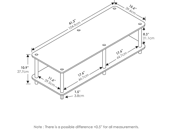 Furinno Just No Tools Dark Cherry Wide Television Stand with Black Tube, Dark Cherry/Black, Wide 41.3"(W)x10.9"(H)x15.6"(D)