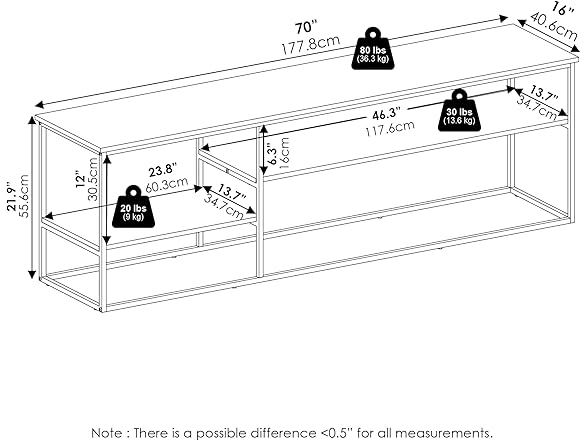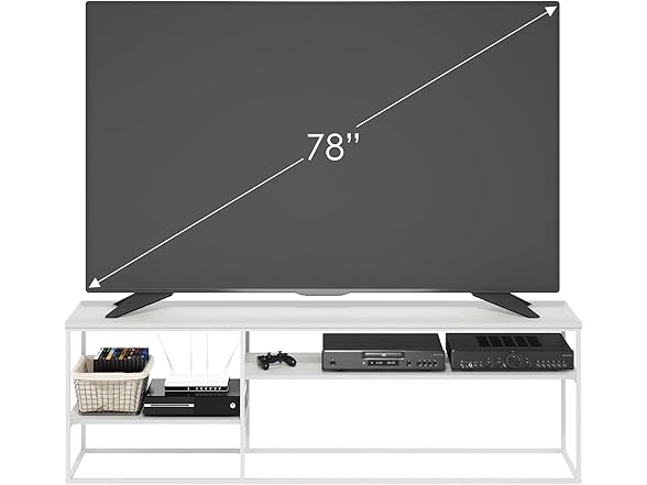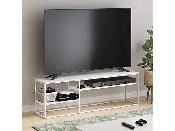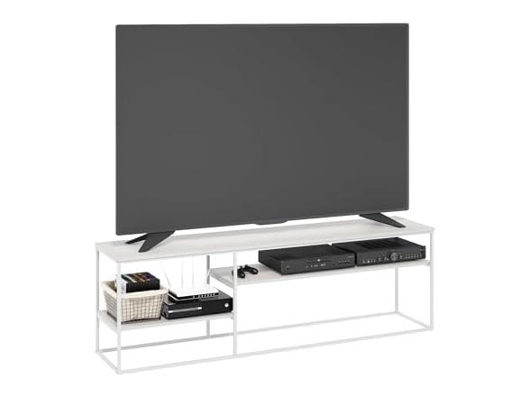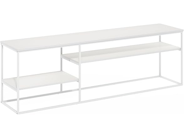 Furinno Moretti TV Stand, 3-Tier Metal Frame Modern Entertainment Center, Open Shelf TV Console for TV up to 70 Inch, for Living Room, Bedroom, Solid White