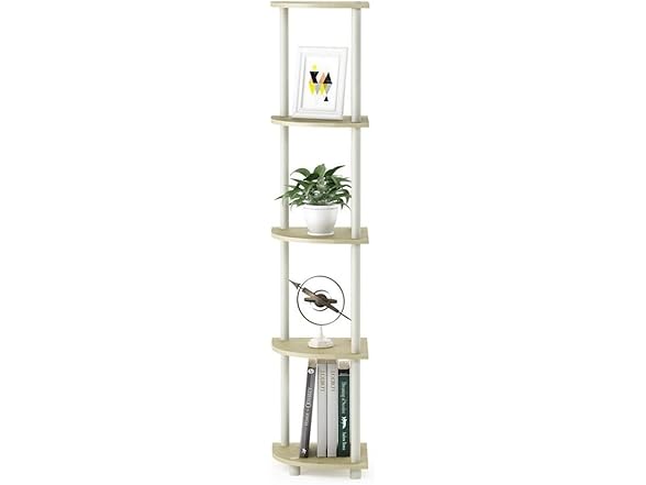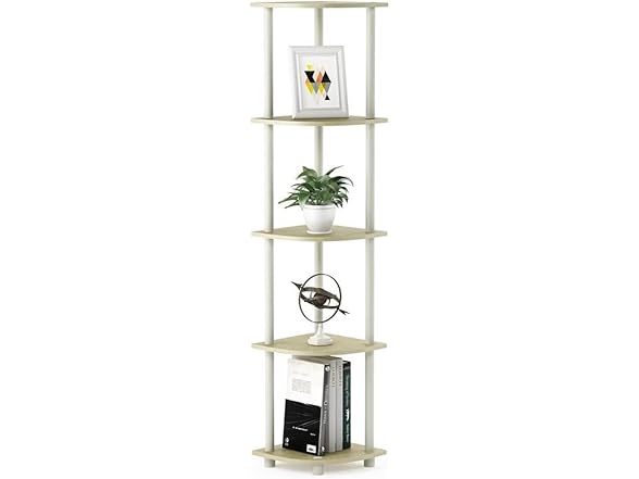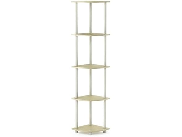 Furinno Turn-N-Tube 5 Tier Corner Display Rack Multipurpose Shelving Unit, 1-Pack, Cream Faux Marble/White