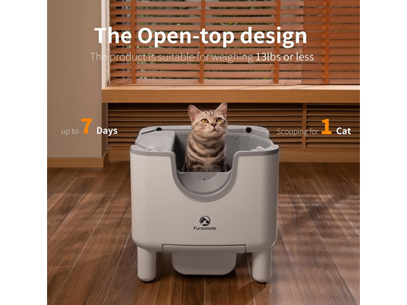 Self-Cleaning Litter Box, Open-Top Automatic Cat Litter Box, Easy to Maintain, with Integrated Safety Protection and Odor Control