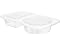 Lock in your sauces with our Futura 5-ounce Clear Plastic Sauce Containers. Designed with a hinged lid, these portion cups create a leak-resistant seal to keep condiments securely contained. Featuring 2 compartments, these sauce cups with lids are great for packaging your mustard and ketchup in a single container. To easily heat up toppings, these disposable condiment cups are conveniently microwavable. The clear finish of these sauce cups provides quick identification to avoid mixing up sauce orders. With a premium PP plastic construction, these ketchup cups are disposable for quick and simple cleanup at your foodservice establishment. Containing up to 5 ounces, these plastic sauce ramekins measure 5 inches long by 3.5 inches wide and 1 inch in height. The small compartment holds about 2 ounces while the larger compartment holds around 3 ounces. Sold in a 100 count box.
