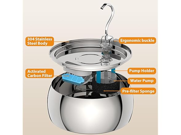 - Durable Stainless Steel, Easy to Clean: Made from high-quality stainless steel, this cat fountain resists corrosion, doesn't trap impurities, and is easy to clean. It's dishwasher-safe for hassle-free maintenance, offering long-lasting durability.