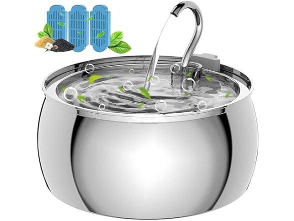 - Keeps Water Fresh and Clean: Equipped with an activated carbon filter, the cat water fountain effectively removes impurities and odors, keeping water fresh and clean. The package includes 3 filters, and we recommend changing them every 2-3 weeks (weekly in warmer months) for optimal hygiene.