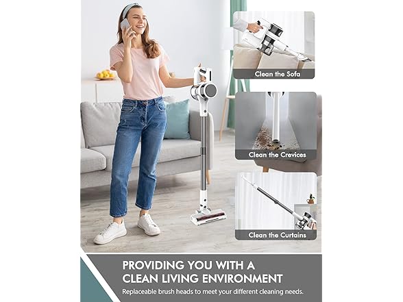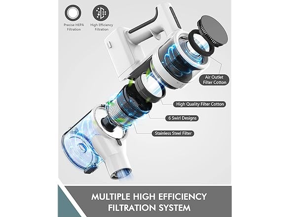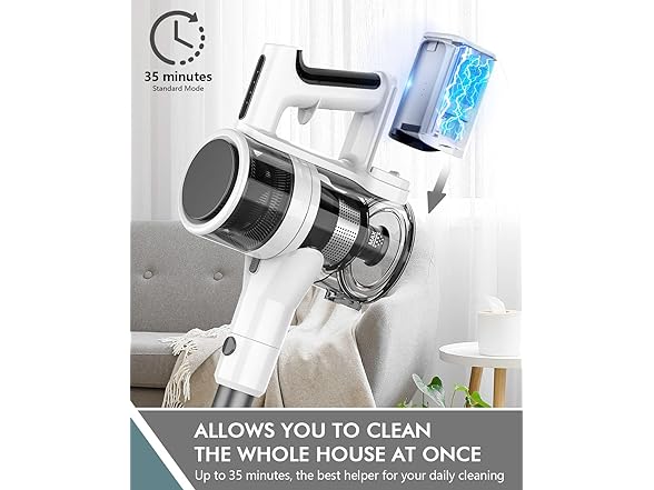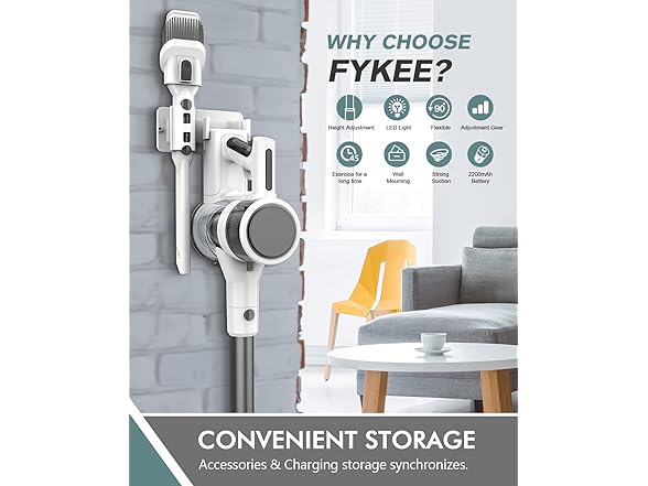 FYKEE P11 Cordless Vacuum Cleaner with Detachable 2200mAh Capacity Battery and 80,000 RPM Brushless Motor, 2 Modes Rechargeable Vacuums for Home up to 35 Mins Runtime
