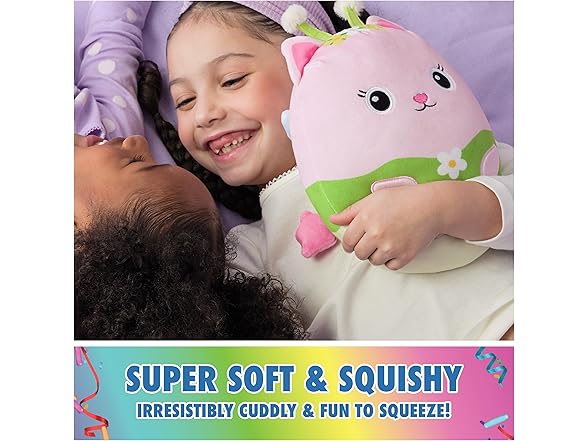 - MEOW-MAZINGLY SQUISHY: Gabby’s friends are squishier than ever These stuffed animals have fun rounded designs and not only spark satisfying sensory play, they’re also sized to use as travel toys on the go