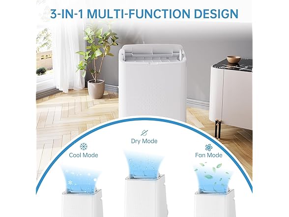 - 4 in-1 Functionality: Offers cooling, dehumidifying (90 pt/day), fan, and sleep modes to meet all your climate control needs throughout the year
