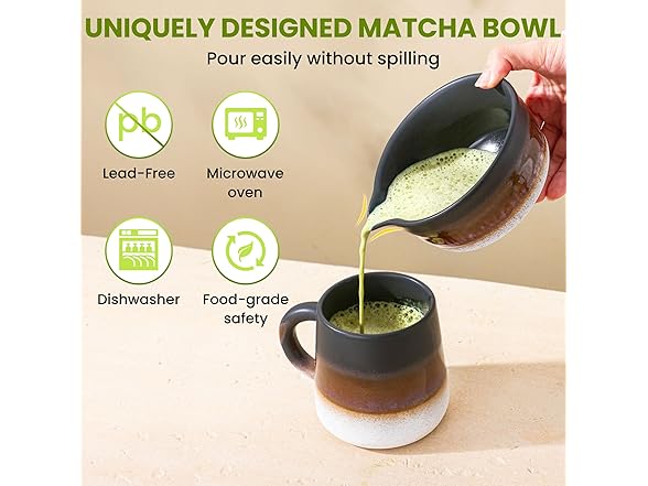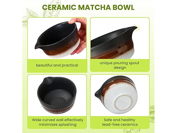 - Safety and Quality: Our ceramic matcha set meets food safety standards (lead-free and mercury-free). The Matte glazed interior prevents tea stains from adhering, ensuring easy cleaning while combining aesthetics with practicality. The handcrafted matcha whisk is made from premium yellow-shell bamboo, enhancing stability and durability without imparting bitterness. Handle diameters are precisely controlled between 1.1–1.25 inch for smooth handling. Strict humidity control and individual airtight packaging ensure optimal product longevity.
