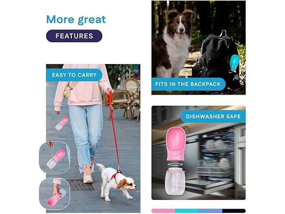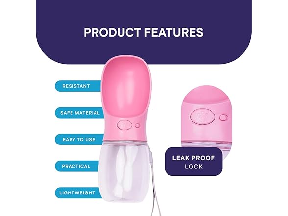 Portable Dog Water Bottle with Bowl – Leak Proof, Lightweight Travel Water Bottle for Dogs. (Pink, 550 ml)