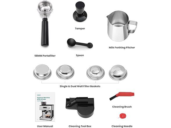 (2026 Upgrade) Gevi 20 Bar Espresso Machine with Grinder & Milk Frother, Professional Coffee Maker for Home, Cappuccino & Latte, Removable Water Tank, Steam Wand