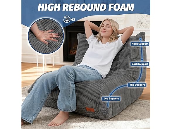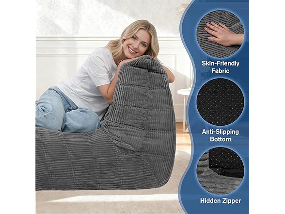 - 【Skin-Friendly Corduroy】Adopted with premium texture, this bean bag chair combines the practicability with elegance. This vertical striped fabric of soft touch, skin-friendly to your kids and pets, which is durable, anti-pilling, breathable and odorless. Compared with the faux fur or faux leather chair, the fabric of this giant bean bag chair will not lint or peel off at all. Besides, the round edge and reinforced stitching makes these beanbag chair durable and safe in daily use.