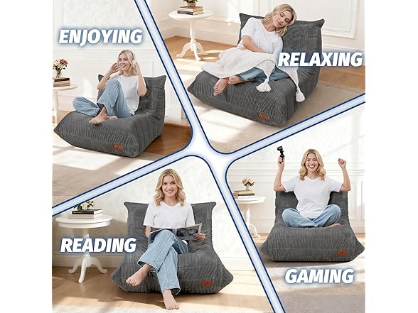 - 【Wrap-Around Feeling】Unlike traditional wooden-framed stiff backrest, these beanbag chairs for adults of ergonomic design are fitting seamlessly to your body contours, minimizing the pressure on spine and hips. And plump fillings give the appropriate support for your body, whatever you are sitting, lounging, reading, gaming even working, ensuring the unparalleled prolonged comfort and relaxation!