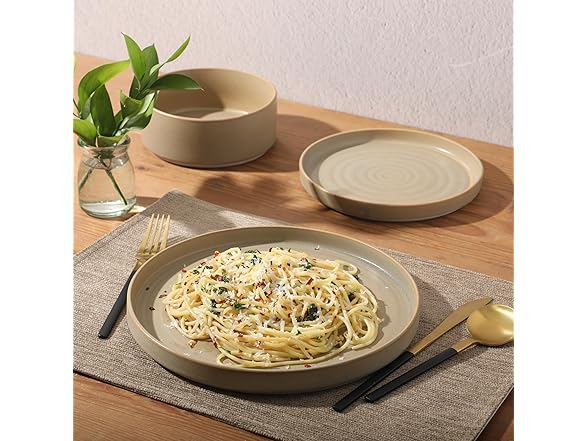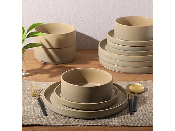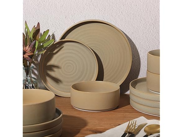 Gibson Elite Echo Bay 12 Piece Porcelain Reactive Glaze (Service for 4) Ceramic Plates and Bowls Modern Stackable Dinnerware Set - Green