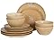 Gibson Elite Valencia Bloom 12 Piece Plates and Bowls Dinnerware Set - Taupe with Floral Decal Dishes - Microwave and Dishwasher Safe