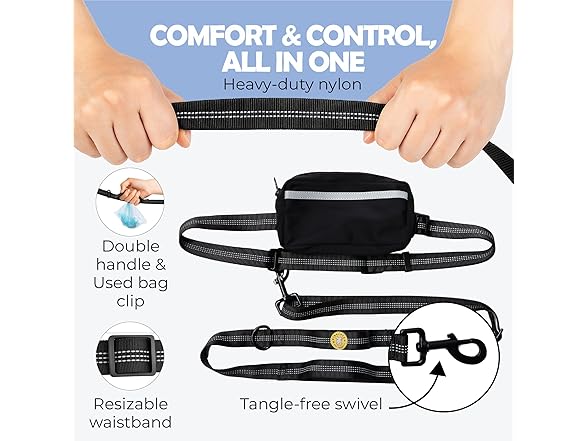 - Won't Tangle, Even During Squirrel Chases: This heavy-duty, hands-free leash is built for all breeds, and it's equipped with a tangle-free swivel clip that prevents leash twisting
