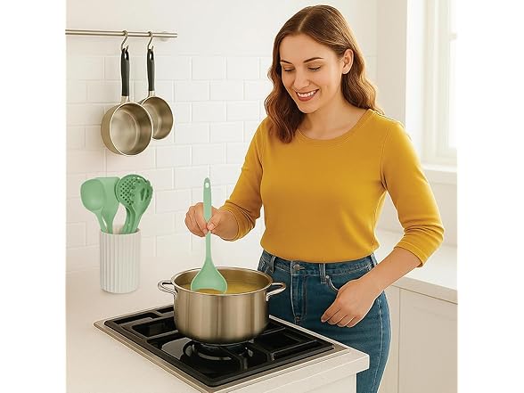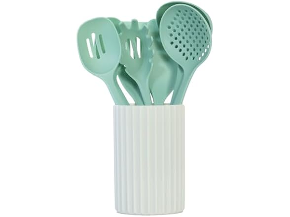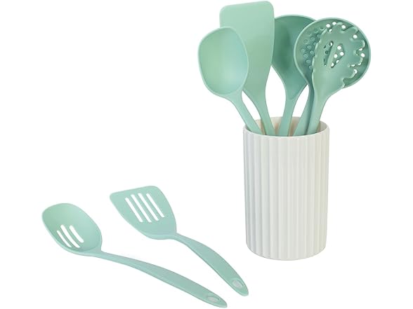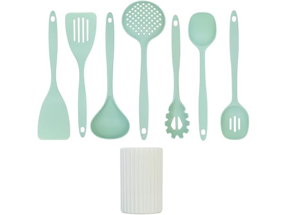 Glad Kitchen Utensils Set, 8pcs - Nonstick Cooking Tools with Utensil Holder - Nylon Spoon, Ladle, Skimmer, Spaghetti Server, and Turner Spatula Set - Dishwasher Safe, Teal Green