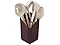 Glad Silicone Kitchen Utensils Set, 8pcs - Nonstick Cooking Tools with Wooden Handles and Utensil Holder - Spatula Set with Turner, Ladle, Spoons, Tongs, and Spaghetti Server - Beige
