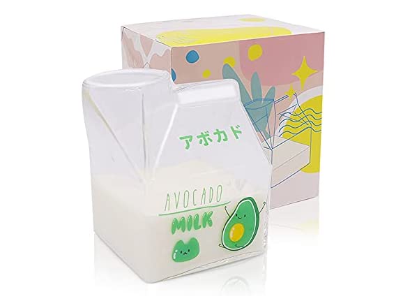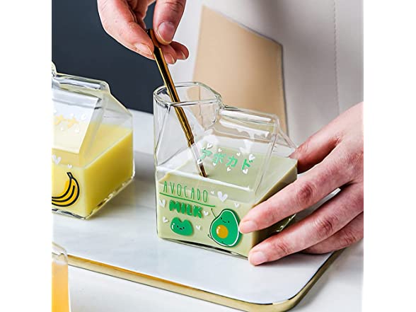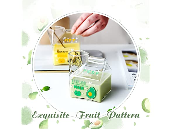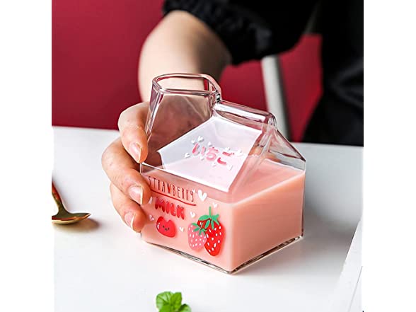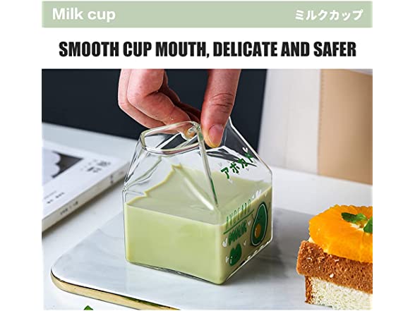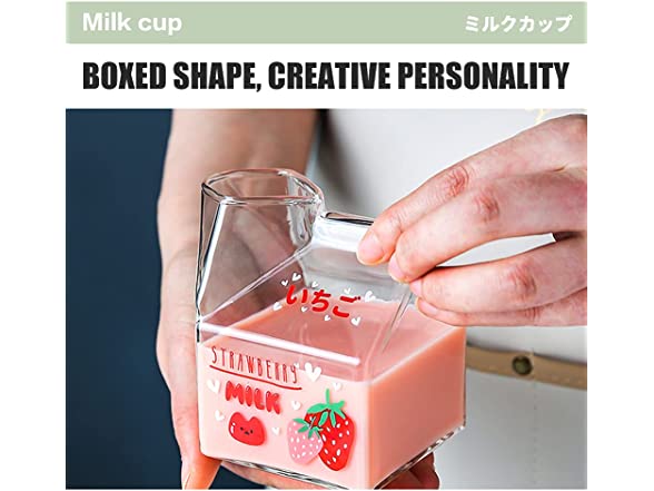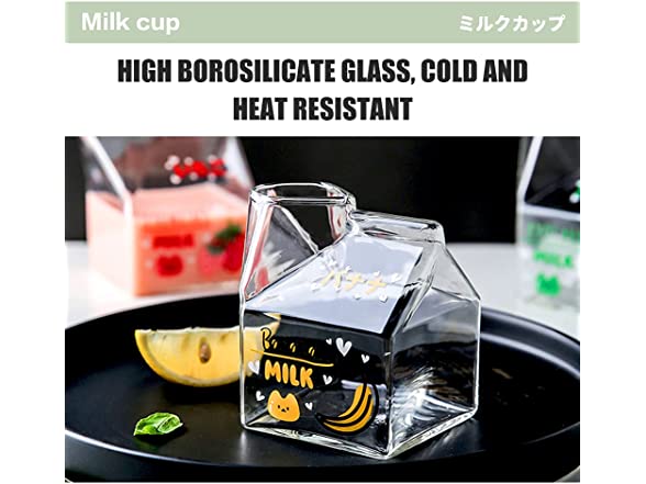 - ΦΦ✿SAFE MATERIAL✿Glass milk carton 1 cup. High borosilicate glass/lead-free, bisphenol A free/580℃ high temperature print pattern/high heat resistance. Lead-free and non-toxic materials are more at ease to drink. High borosilicate glass does not add lead and mercury to increase brightness. Acting on the production of tableware is quite popular.