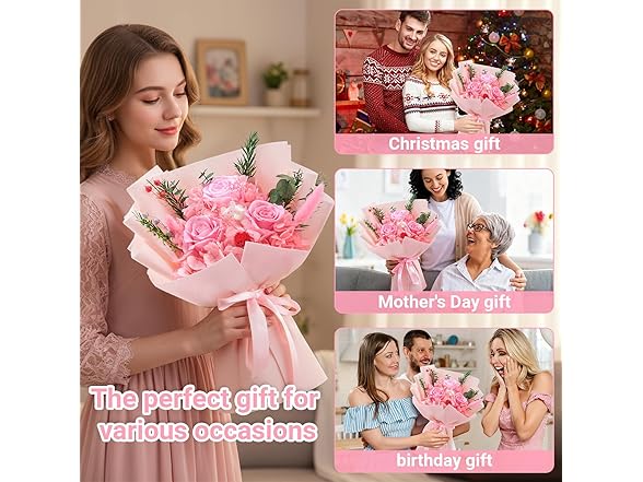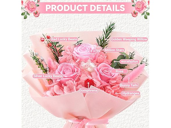 Gnifot Preserved Pink Rose Bouquets