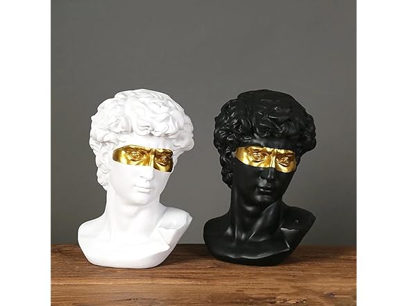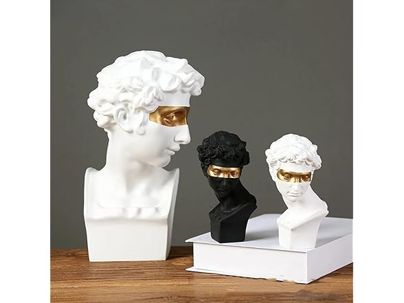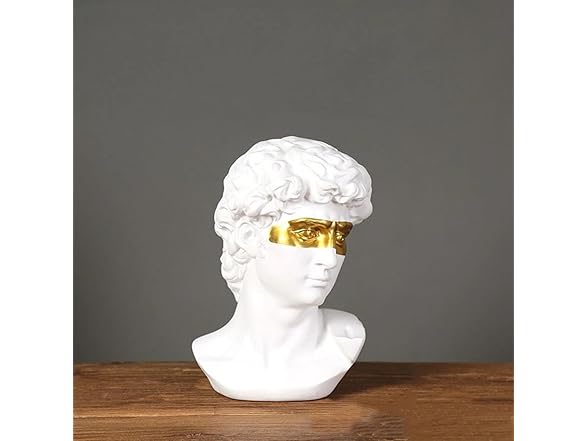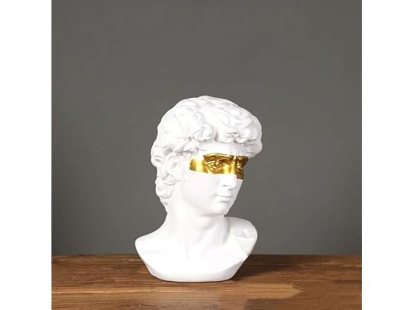 HUWKMEZ Golden Resin Mask David Bust Statue Elegant Character Resin Sculpture Figurine for Home Office Décor