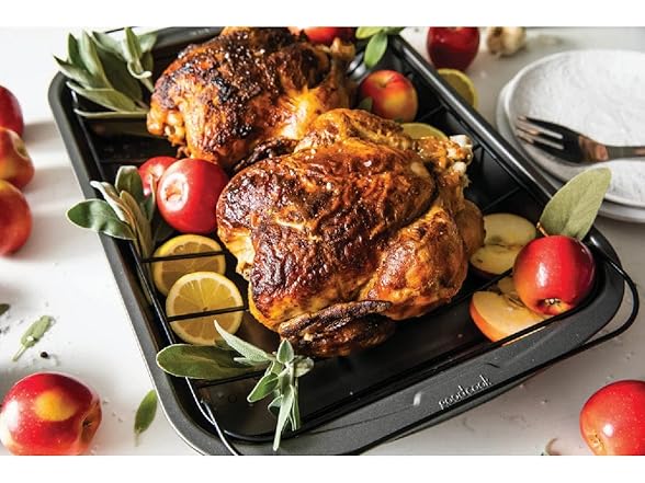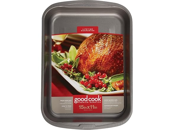 Goodcook 04048 Metal Utensil Nonstick Roast Pan, Easy Clean Dishwasher Safe, 11.5 Inch x 15.5, Silver
