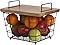This Gourmet Basics by Mikasa Madam Petite Stacking And Nesting Basket with Wood Lid is an eye-catching and practical storage solution for any room. Handcrafted from iron for long-lasting beauty even under rigorous use with a mango wood lid, the basket features a wire-framed design with a bold black finish that complements any décor. Attractively display fruit while allowing it to breathe, fill it with toys or pet accessories, or use the basket as a catch-all to keep essentials within reach. A large opening in front allows for easily adding and removing items without taking off the lid. Basket has convenient carrying handles, and you can stack multiple baskets to create space-saving storage. Plus, if you have multiple baskets, they can nest for compact storage when not in use. Measures 8" high x 10.75" long x 8" wide. To clean, simply wipe with a damp cloth.